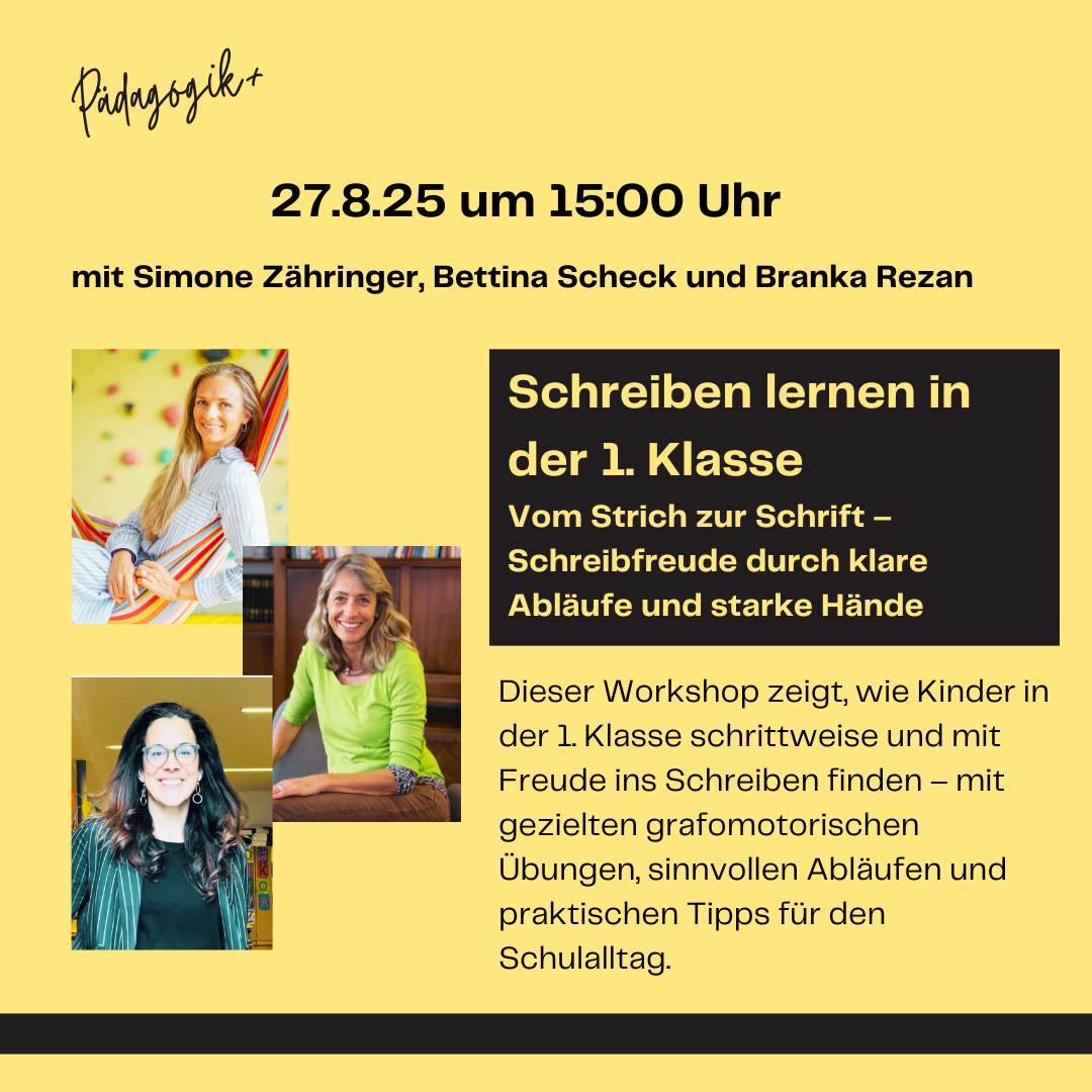 Dieser Workshop zeigt, wie Kinder in der 1. Klasse schrittweise und mit Freude ins Schreiben finden – mit gezielten grafomotorischen Übungen, sinnvollen Abläufen und praktischen Tipps für den Schulalltag.