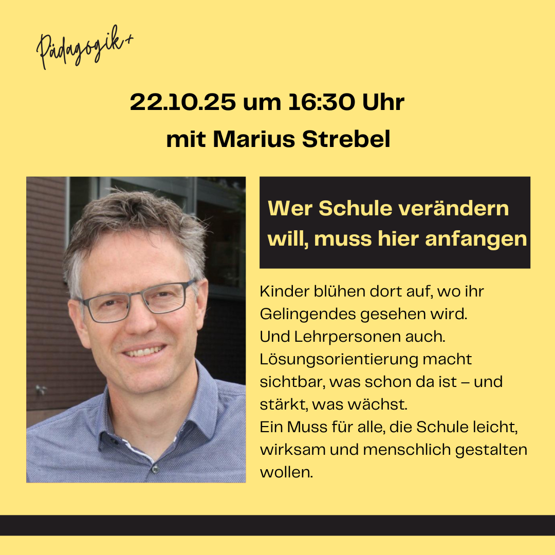 Als Lehrperson hörst du ständig: „Keine Motivation. Keine Konzentration. Was soll ich noch machen?“ – genau hier setzen wir an. Du bekommst keine Patentrezepte, aber klare, konkrete Impulse, wie du Blockaden lösen kannst und wieder Handlungsspielraum gewinnst – nicht durch noch mehr Kontrolle, sondern durch echtes Verstehen. Denn Potenzial kann nur sichtbar werden, wenn der Weg dorthin frei wird – für deine Schüler:innen, aber auch für dich selbst.